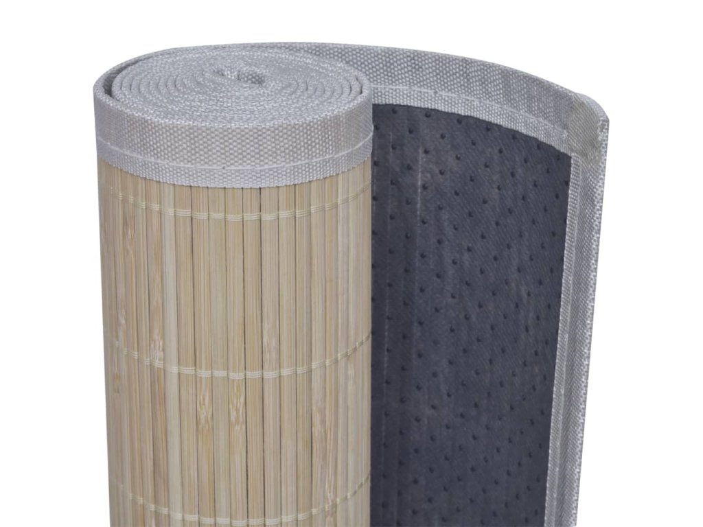 Spodní strana bambusového koberce je podložená neklouzavou vrstvou z PVC, která poskytuje nejen vynikající tlumení, ale navíc udržuje koberec na místě. Polypropylenové okraje dodávají bambusové rohoži pečlivě dokončený vzhled. Koberec je vyrobený z přírodního pevného bambusu a snadno se čistí.