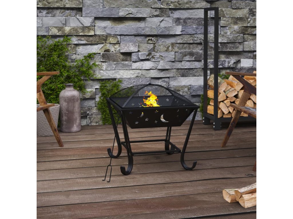 - Bezpečné příslušenství: Přes síťku budete moct sledovat hořící oheň a zároveň uzavírá ohniště pro větší bezpečnost a také zabraňuje vylétání jisker a nečistot. Přiložený kovový pohrabáč lze použít jak k sejmutí síťového krytu, tak k přerovnání polen.