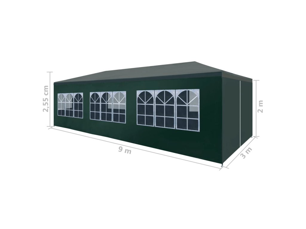 Zahradní stan je vyrobený z vodě- a UV záření odolného polyetylenu a je ideální pro venkovní použití. Rám je vyrobený z nerezové oceli, takže je venkovní přístřešek stabilní a odolný. Party stan je vybavený bočními panely s ozdobnými okny, jeden z nich s průchodem na zip pro snadný vstup. Zahradní altán se dá velmi jednoduše sestavit.