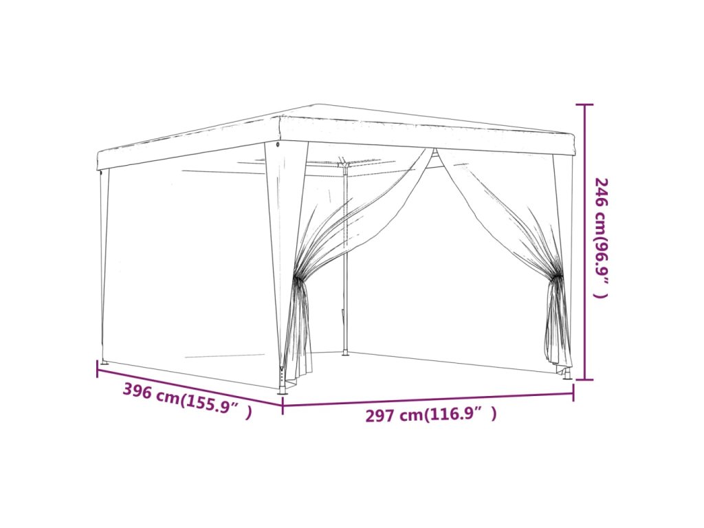 Tento super cool party stan s odolným železným rámem, voděodolnou střechou a čtyřmi síťovanými bočnicemi je ideálním úkrytem před sluncem.