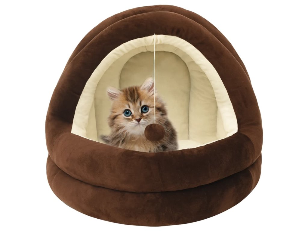 Silně polstrovaný pelíšek pro kočky je vyrobený z měkkého fleecu a vašim chlupatým miláčkům poskytne pohodlné a teplé místečko. Pelíšek pro kočku má navíc protiskluzové dno, které ho drží pevně na místě a předchází nehodám. Tento pelíšek pro kočky se snadno čistí a otírá. Součástí je i zavěšený míček pro větší zábavu.