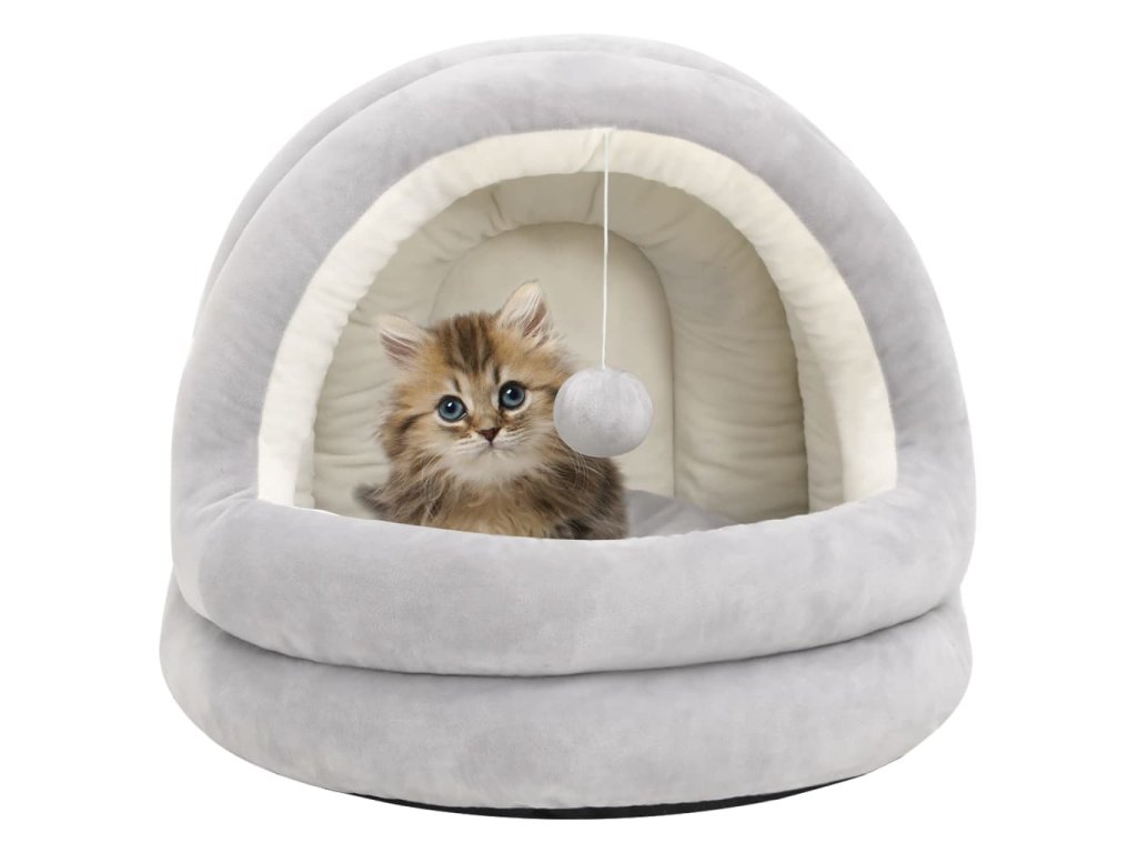 Silně polstrovaný pelíšek pro kočky je vyrobený z měkkého fleecu a vašim chlupatým miláčkům poskytne pohodlné a teplé místečko. Pelíšek pro kočku má navíc protiskluzové dno, které ho drží pevně na místě a předchází nehodám. Tento pelíšek pro kočky se snadno čistí a otírá. Součástí je i zavěšený míček pro větší zábavu.