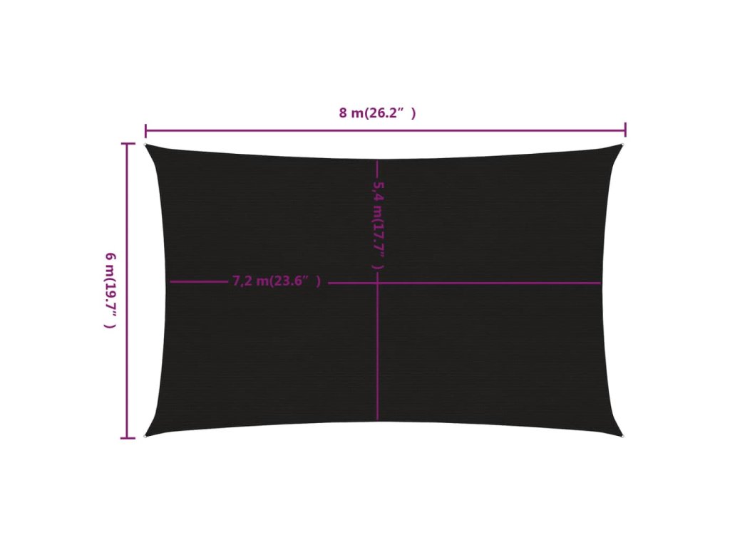 vidaXL Plachta proti slunci 160 g/m2 obdélník černá 6 x 8 m HDPE