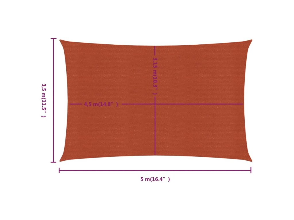 vidaXL Plachta proti slunci 160 g/m2 obdélník terakota 3,5 x 5 m HDPE