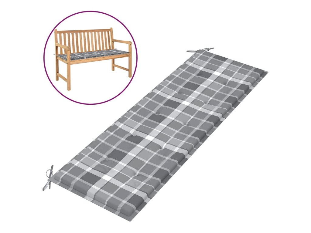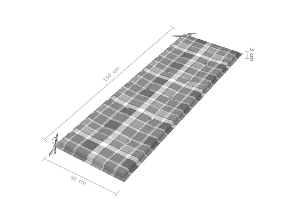 vidaXL Poduška na zahradní lavici šedá károvaná 150 x 50 x 3 cm textil