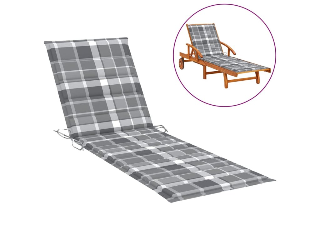 vidaXL Poduška na zahradní lehátko šedá károvaná 200x70x4 cm textil