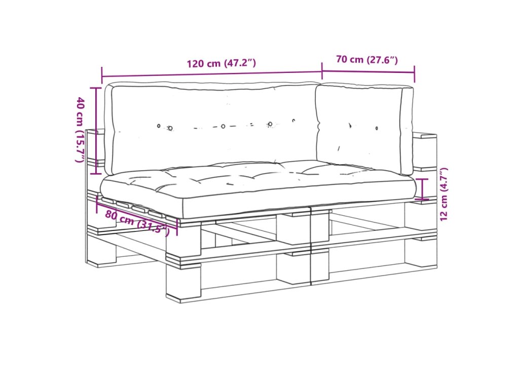 - 1x poduška na sedák: 120 x 80 x 12 cm (D x Š x T)