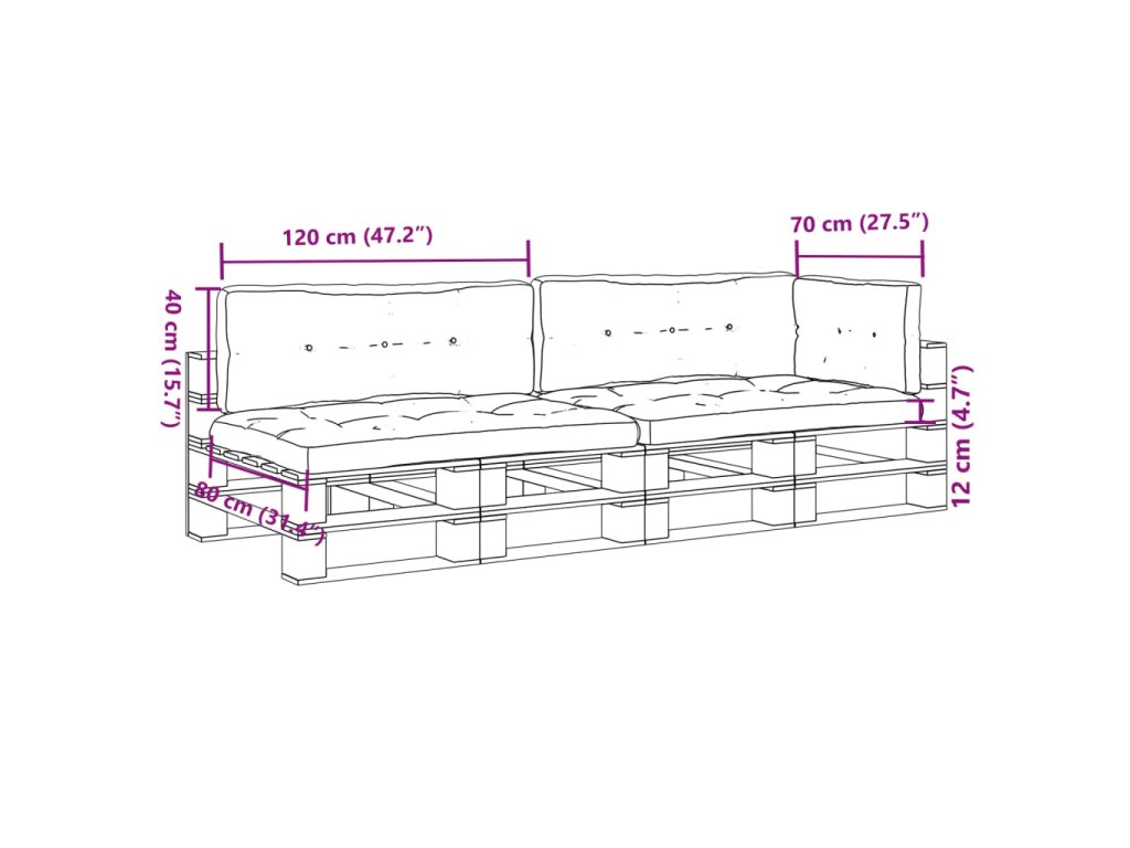 - 2x poduška na sedák: 120 x 80 x 12 cm (D x Š x T)