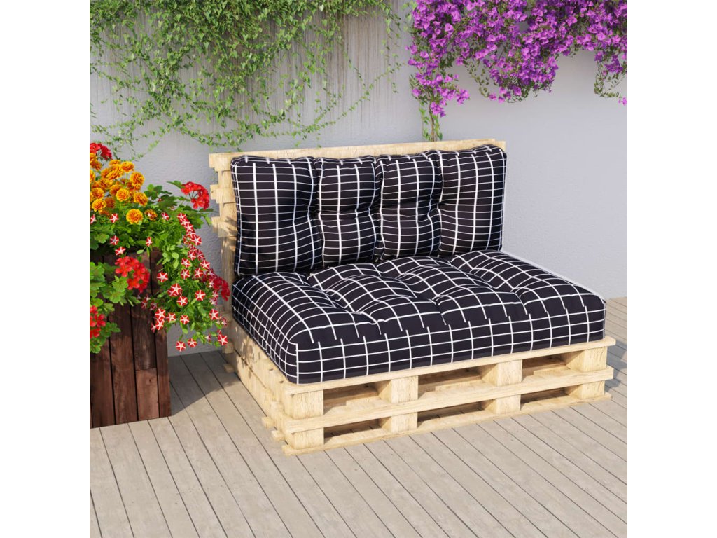 vidaXL Podušky na pohovku z palet 2 ks černé károvaný vzor textil