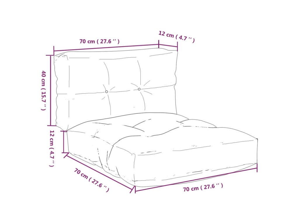 - Rozměry podušky za záda: 70 x 40 x 12 cm (D x Š x T)