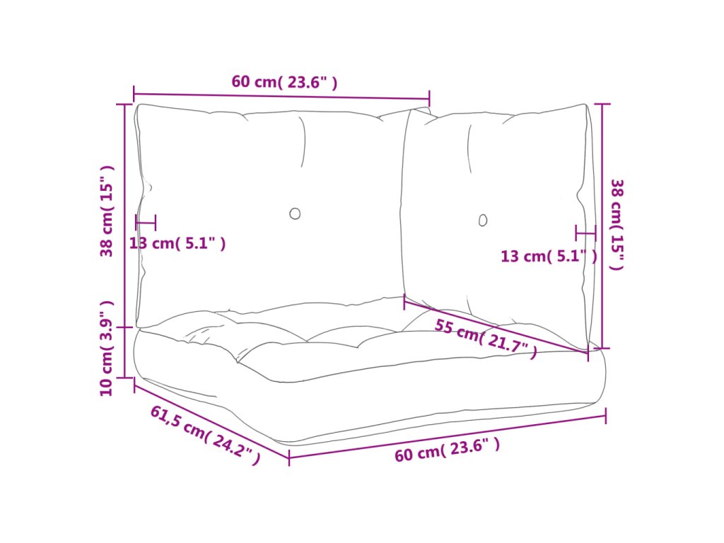 - Rozměry podušky na opěradlo: 60 x 38 x 13 cm (D x Š x T)