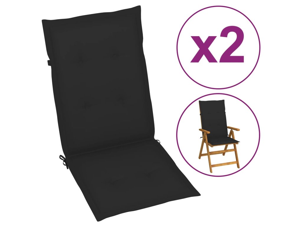 vidaXL Podušky na zahradní židle 2 ks černé 120 x 50 x 3 cm
