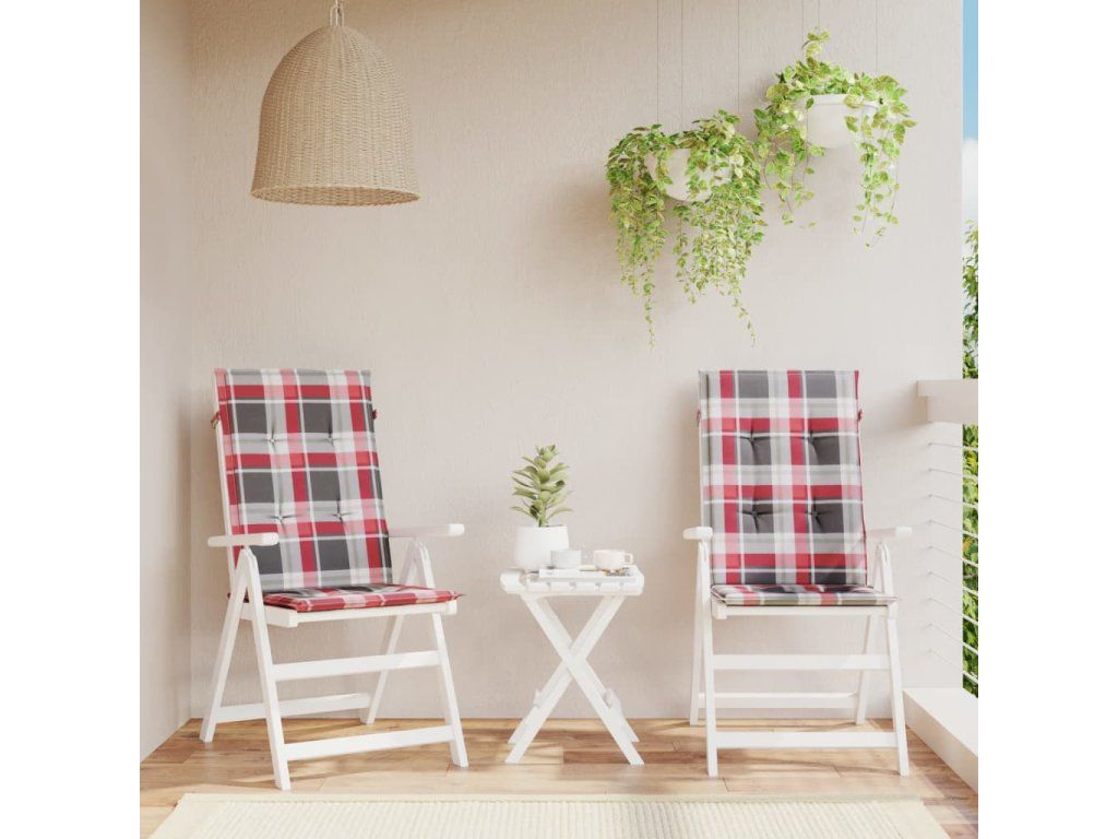 vidaXL Podušky na zahradní židle 2 ks červené kárované 120 x 50 x 4 cm