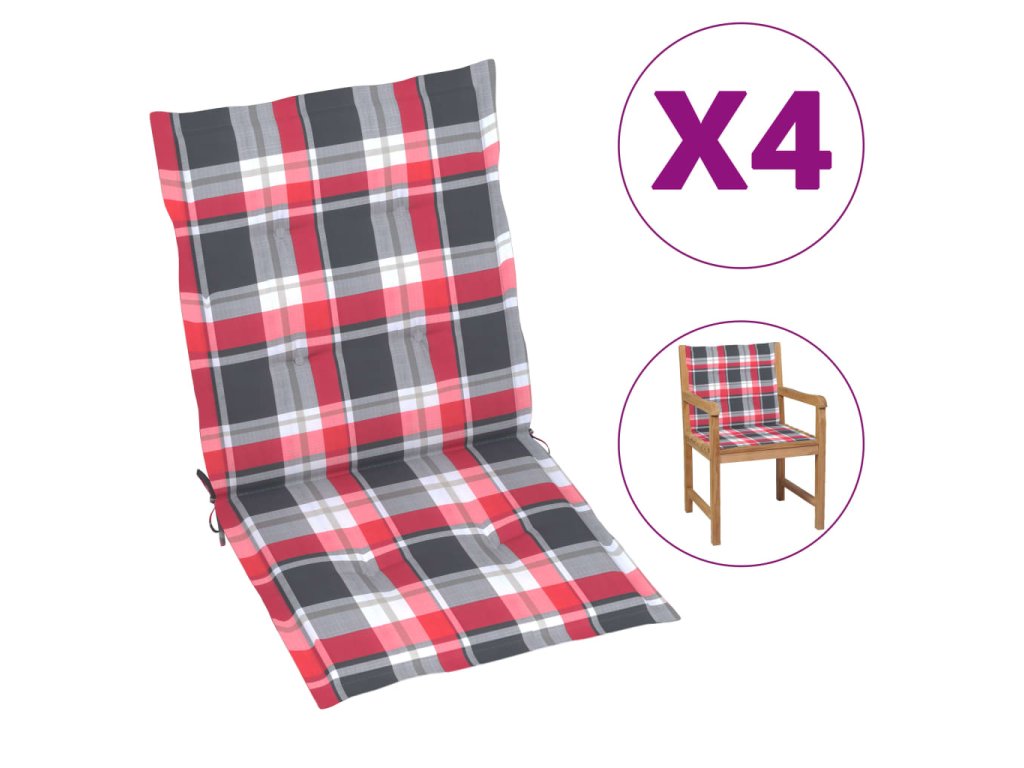 vidaXL Podušky na zahradní židle 4 ks červené kárované 100 x 50 x 4 cm