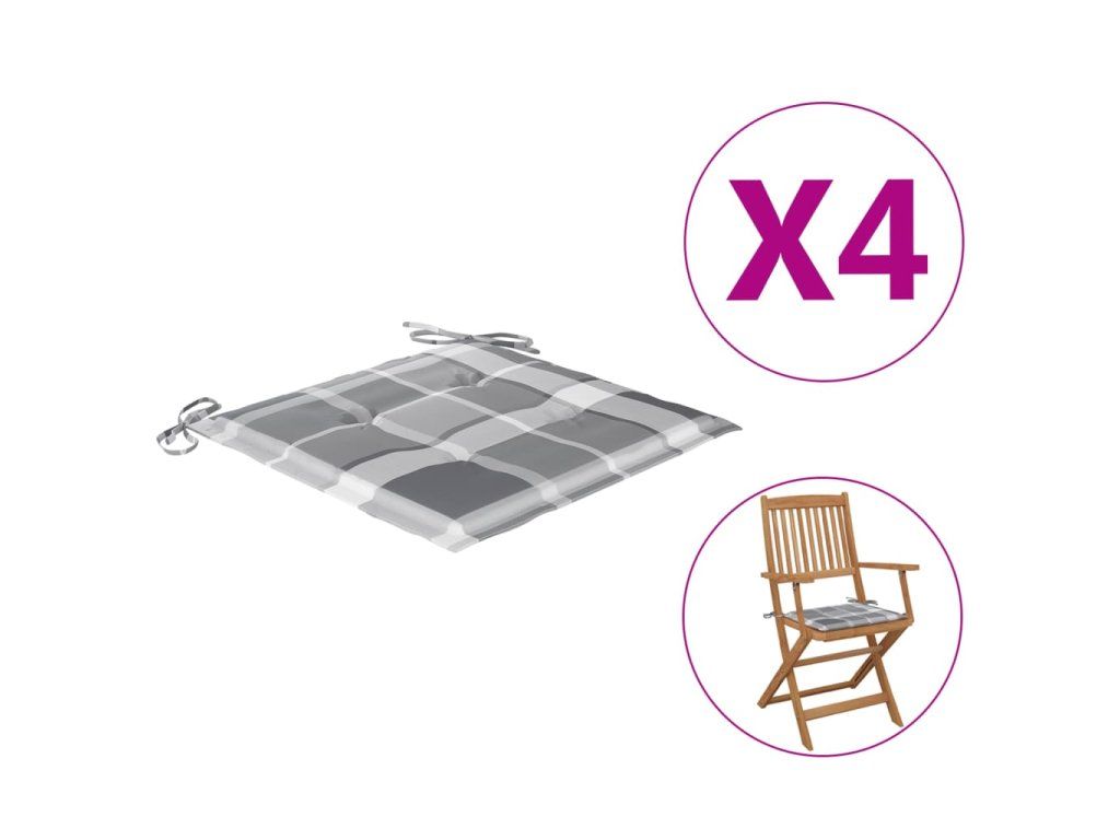 vidaXL Podušky na zahradní židle 4 ks šedé kárované 40x40x3 cm textil