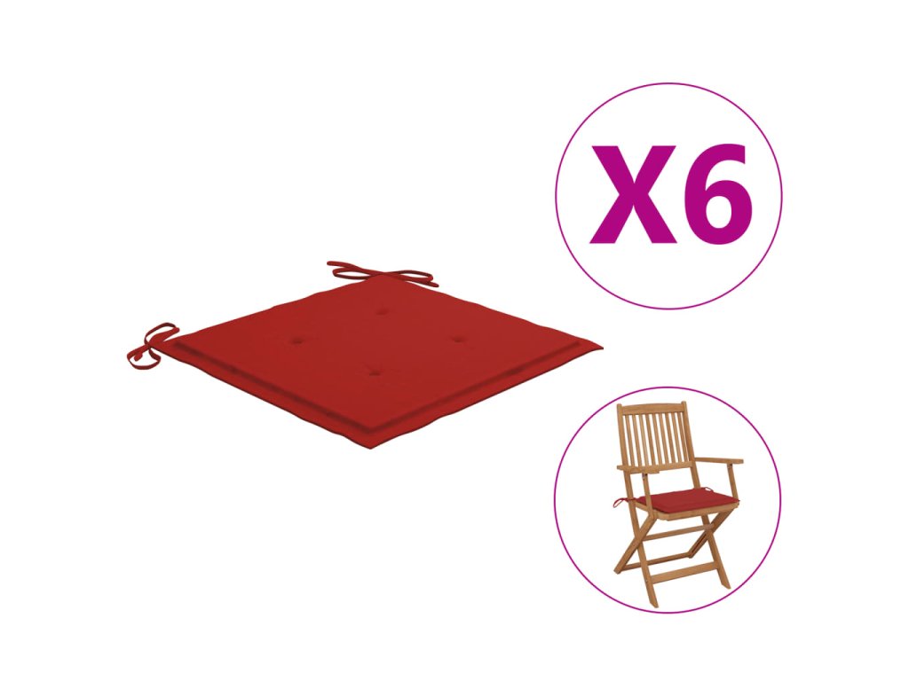 vidaXL Podušky na zahradní židle 6 ks červené 40 x 40 x 3 cm textil