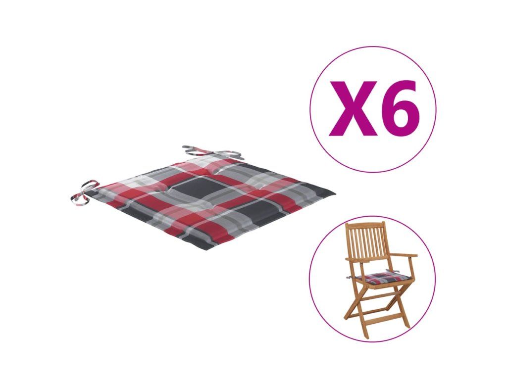 vidaXL Podušky na zahradní židle 6 ks kárované 40 x 40 x 4 cm textil