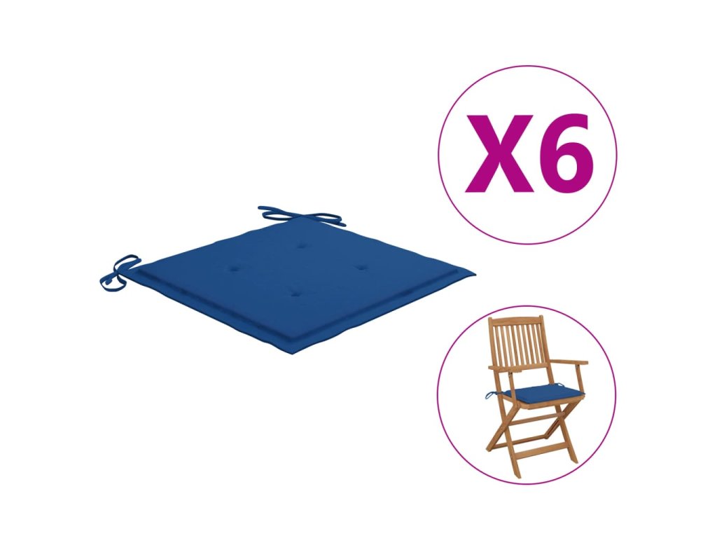 vidaXL Podušky na zahradní židle 6 ks královsky modré 40x40x3cm textil