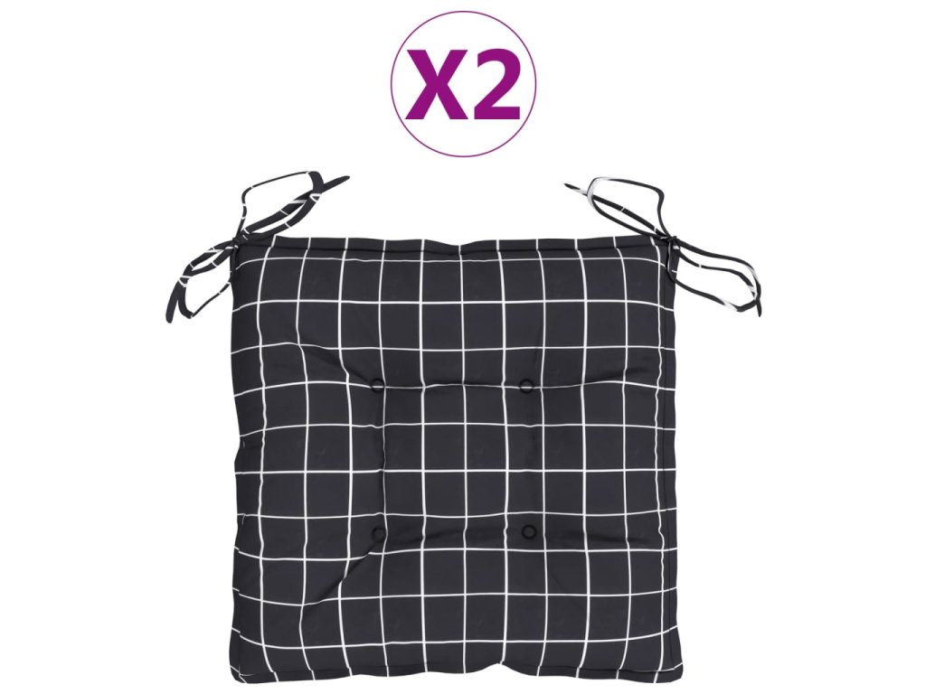 vidaXL Podušky na židli 2 ks černé kárované 40 x 40 x 7 cm textil