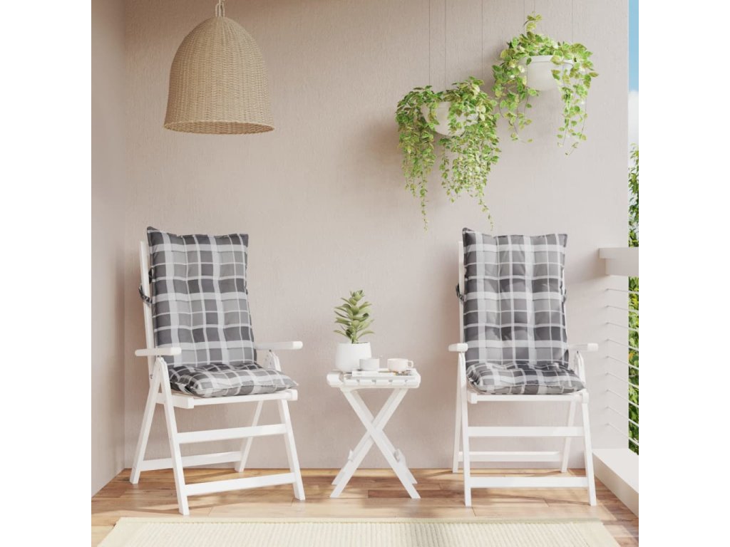 vidaXL Podušky na židli s vysokým opěradlem 2 ks šedé kárované oxford