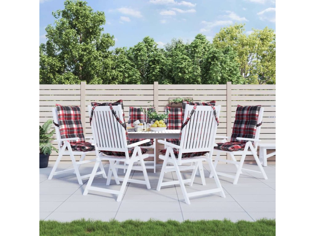 vidaXL Podušky na židli vysoké opěradlo 6 ks červené kárované oxford