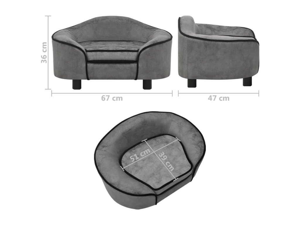 vidaXL Pohovka pro psy šedá 67 x 47 x 36 cm plyš