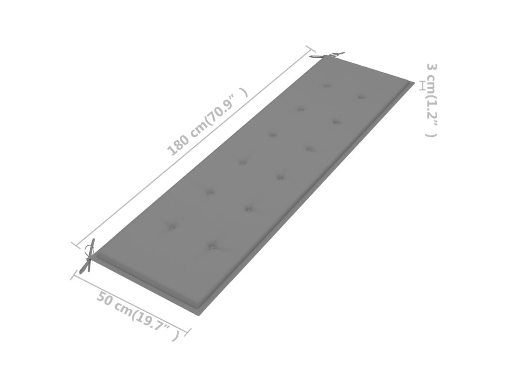 vidaXL Polstr na zahradní lavici, šedý, 180x50x3 cm