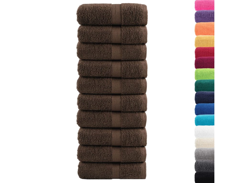 vidaXL Premium žínky 10 ks hnědé 30 x 30 cm 600 g/m2 100% bavlna