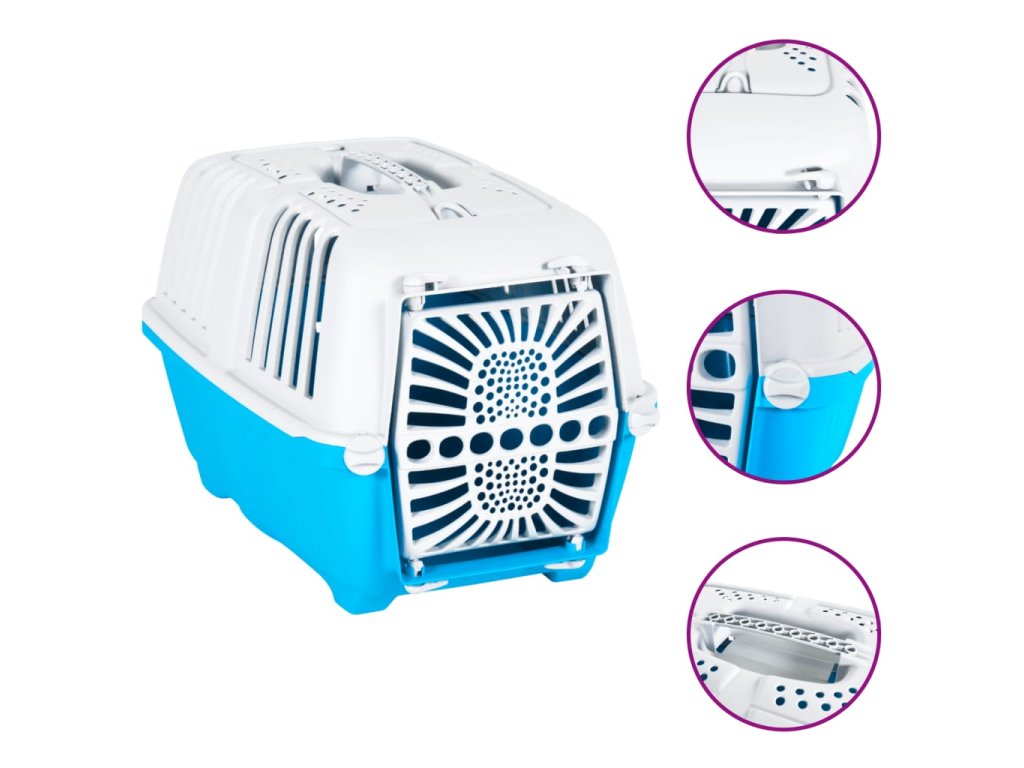 - Větrací štěrbiny: Přepravka pro domácí mazlíčky má větrací štěrbiny, které zajišťují stálou cirkulaci vzduchu a pohodlí vašich zvířat.