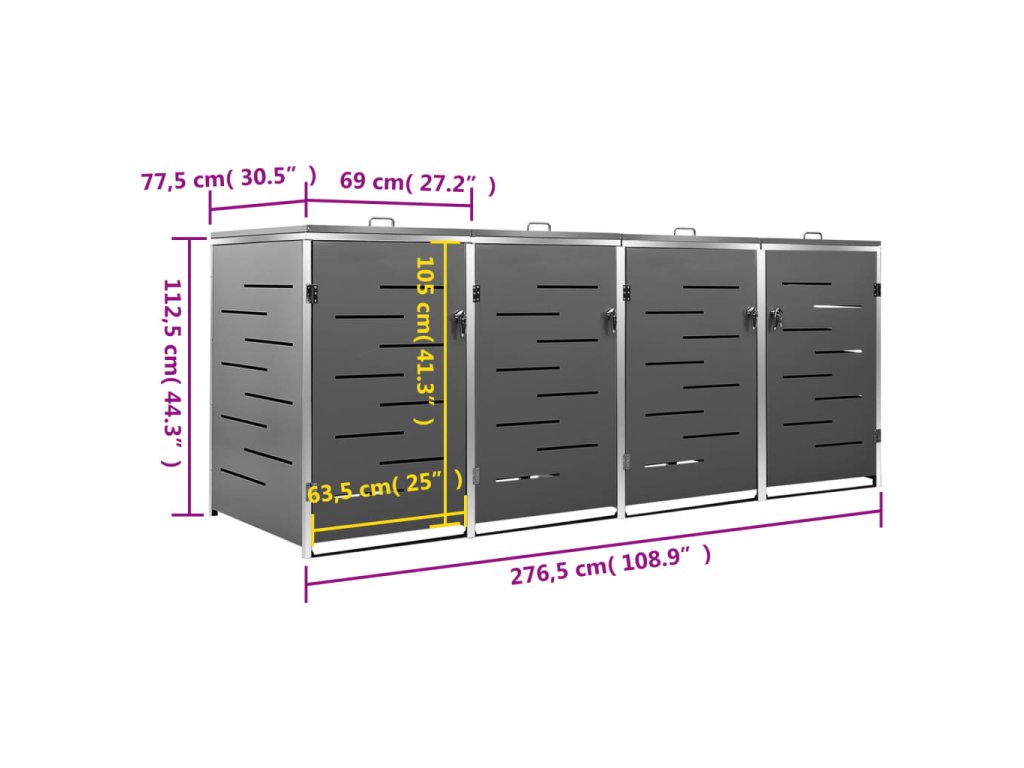 vidaXL Přístřešek na čtyři popelnice 276,5x77,5x115,5 cm nerezová ocel