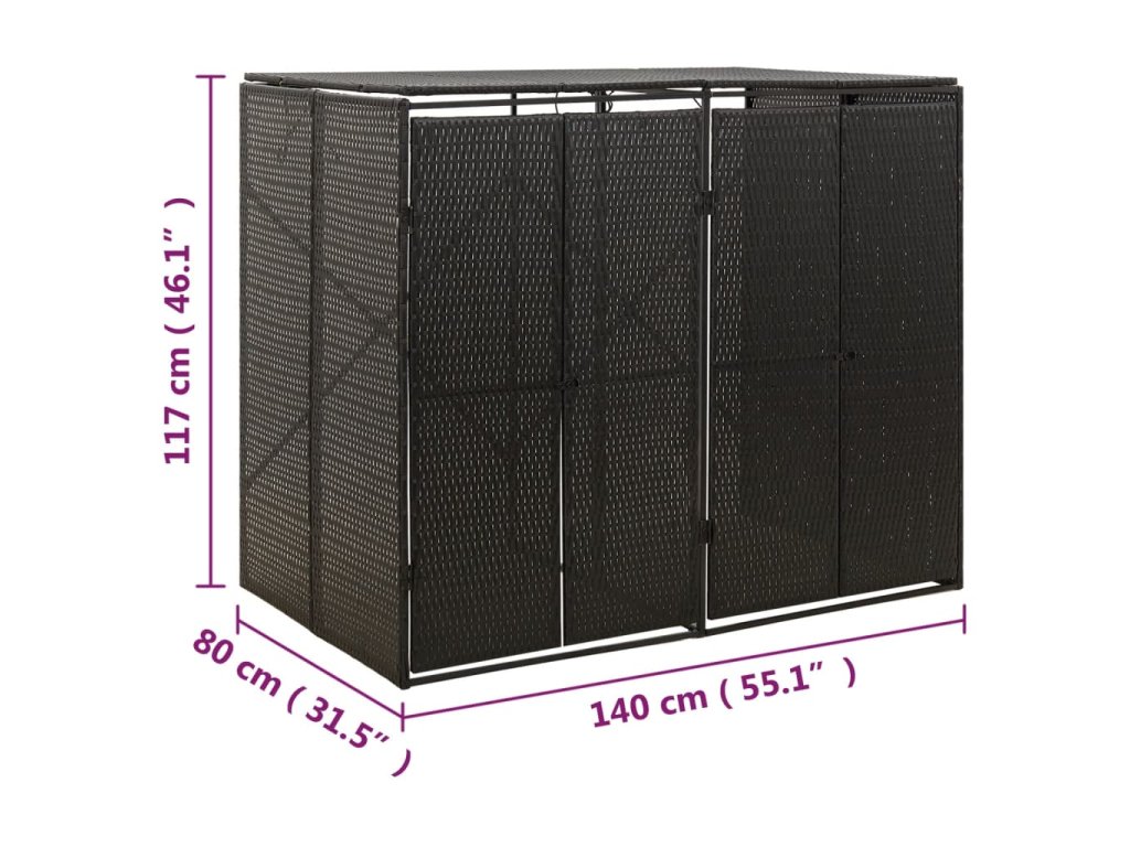 vidaXL Přístřešek na dvě popelnice černý 140 x 80 x 117 cm polyratan