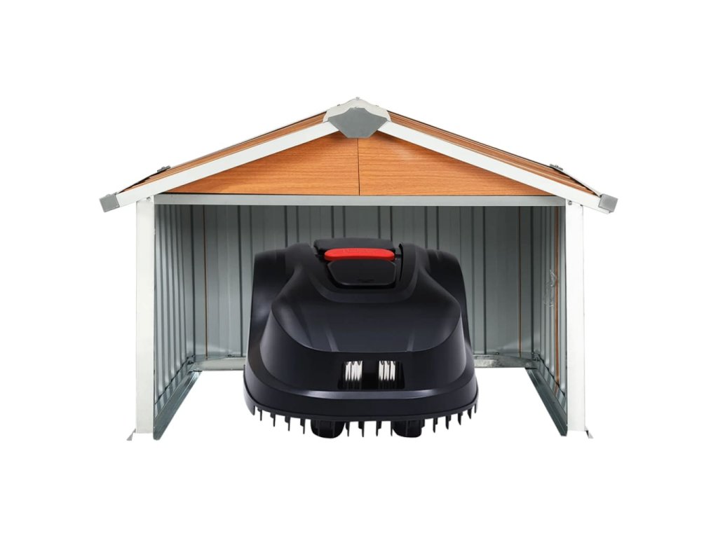 Díky pozinkované ocelové konstrukci je skladovací domek robustní a stabilní. Nabíjecí stanici můžete umístit do garáže a robotická sekačka do ní vstoupí pokaždé, když ji bude potřeba nabít. Robotická sekačka se automaticky vejde dovnitř a chráněná tam zůstane, než znovu vyjde ven sekat trávu.