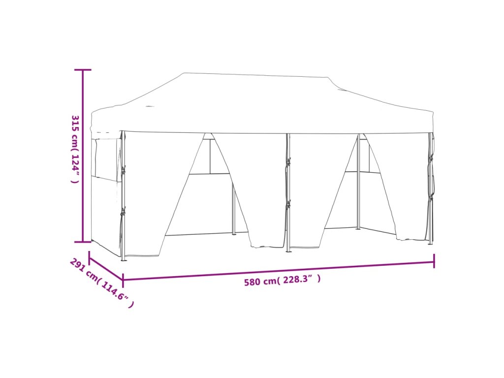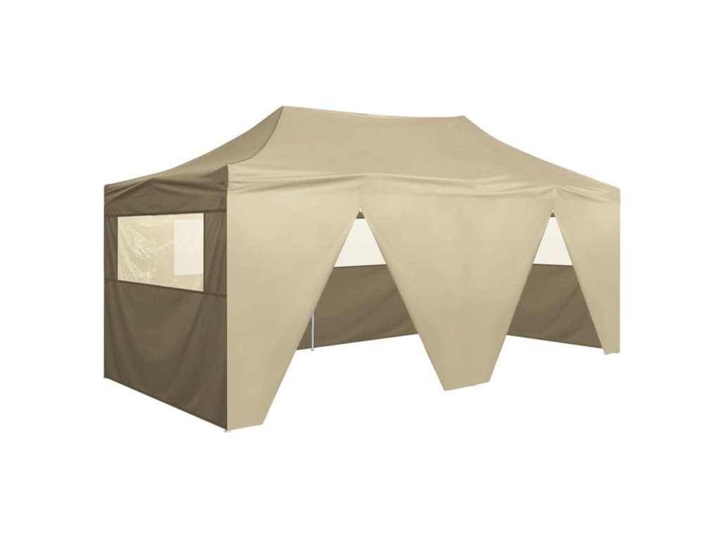 Venkovní stříška má střechu odolnou vůči UV záření a vodě, která je vyrobena z oxfordské tkaniny 600D s PVC povlakem, a proto je ideální pro venkovní použití. Párty stan je navržen se 4 bočními stěnami s průhlednými okny pro zajištění plné ochrany. Rám je vyroben z oceli s práškovým nástřikem odolné proti korozi, díky čemuž je zahradní stan stabilní a odolný. Rozkládací párty stan je skládací pro snadné skladování a přepravu. Snadno se montuje.