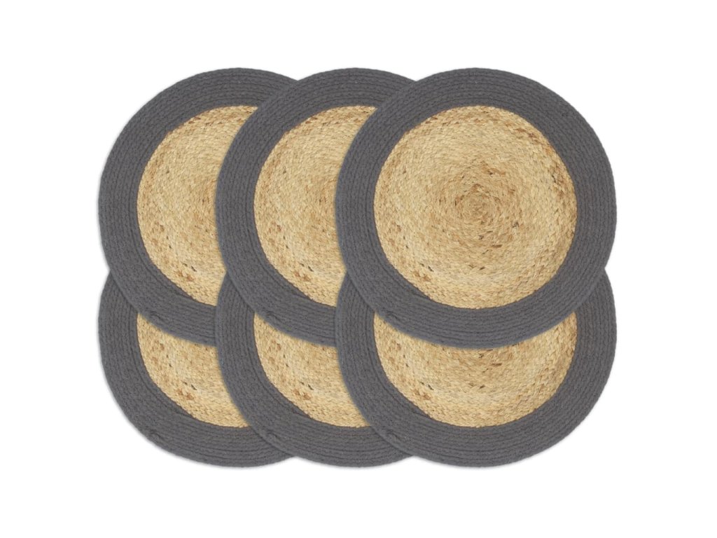 vidaXL Prostírání 6 ks přírodní a antracitové 38 cm juta a bavlna