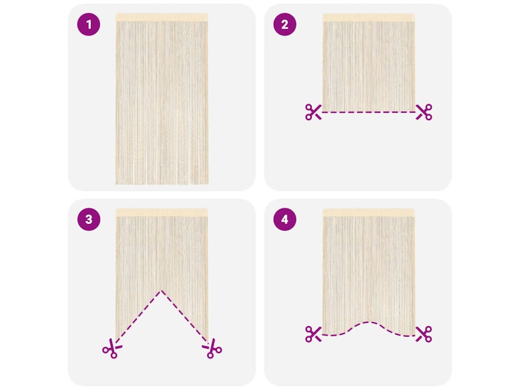 Naše praktické provázkové závěsy jsou skvělým dekorativním doplňkem do interiéru. Uplatnit je můžete jako závěs do dveří, do okna, jako předěl pokoje či jako pozadí do výlohy.