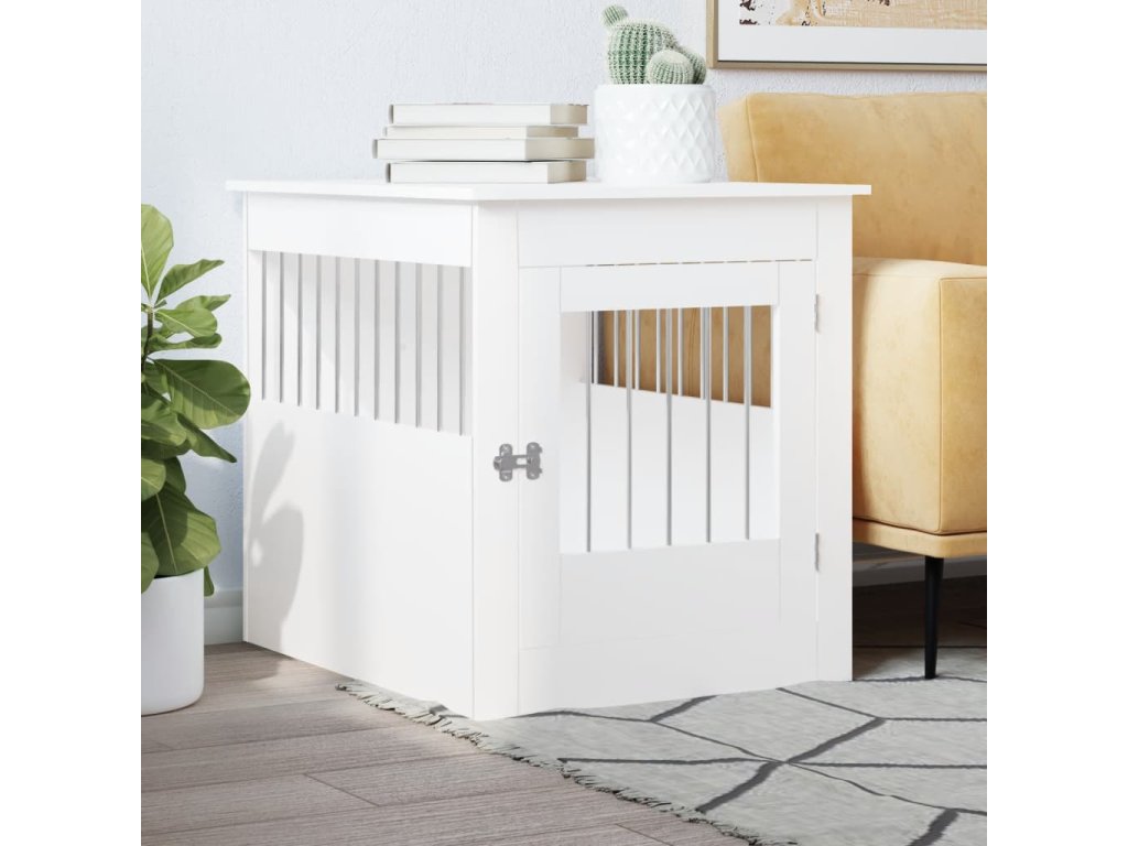 Tato psí bouda, která slouží jako klec pro psa i jako odkládací stolek, je praktickým a poutavým doplňkem vašeho obývacího pokoje.