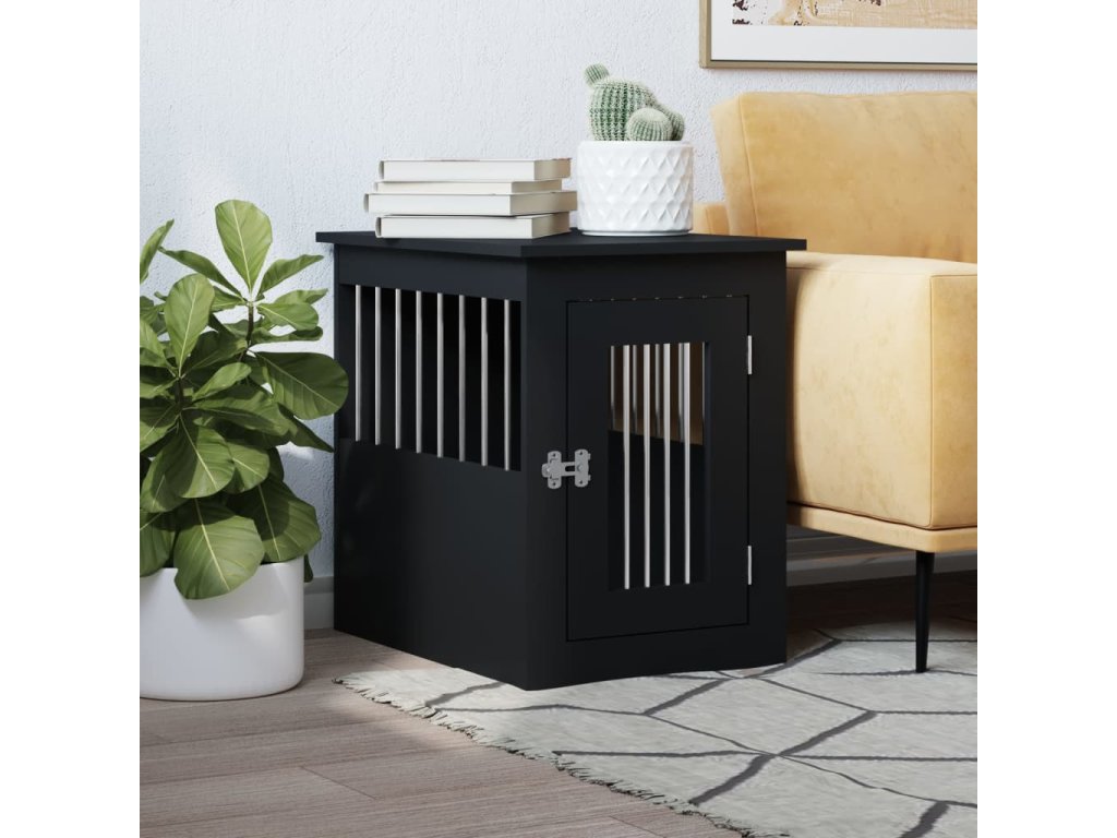 Tato psí bouda, která slouží jako klec pro psa i jako odkládací stolek, je praktickým a poutavým doplňkem vašeho obývacího pokoje.