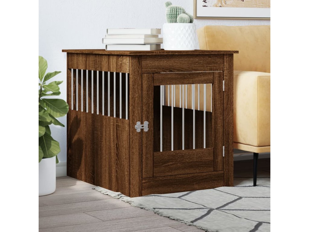 Tato psí bouda, která slouží jako klec pro psa i jako odkládací stolek, je praktickým a poutavým doplňkem vašeho obývacího pokoje.
