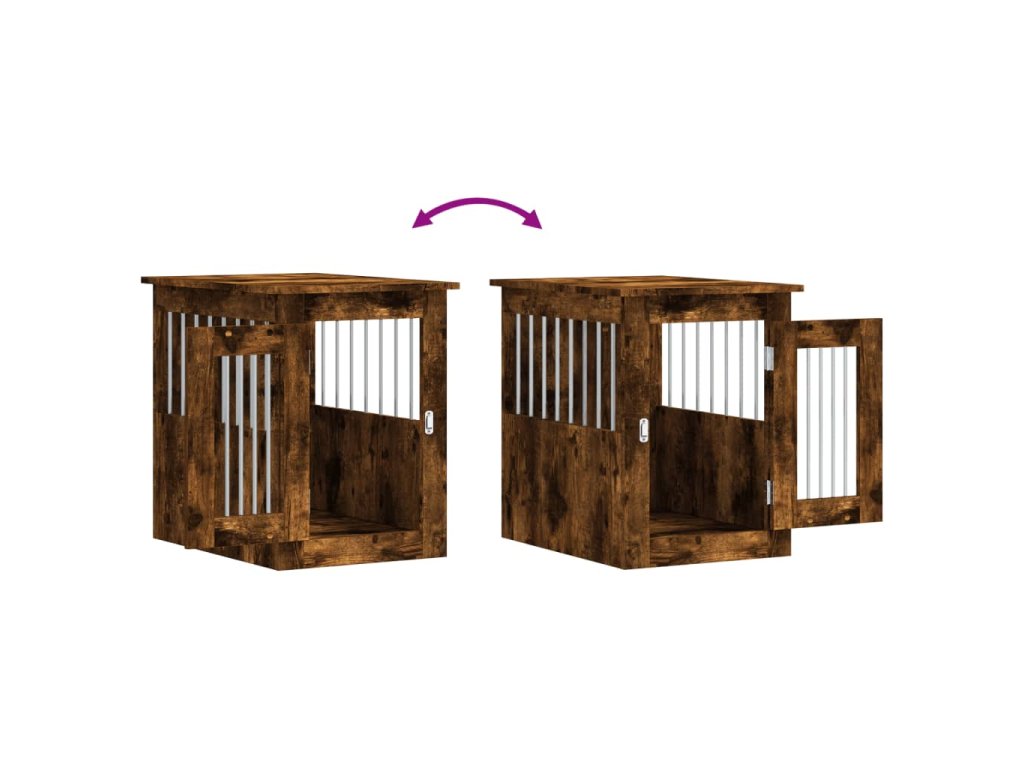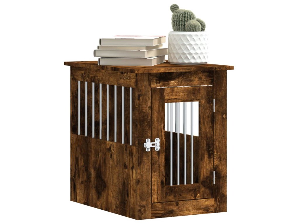 Tato psí bouda, která slouží jako klec pro psa i jako odkládací stolek, je praktickým a poutavým doplňkem vašeho obývacího pokoje.