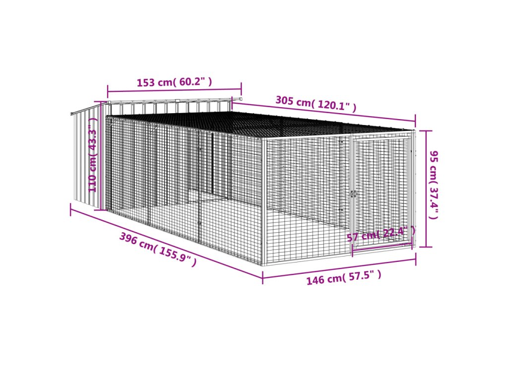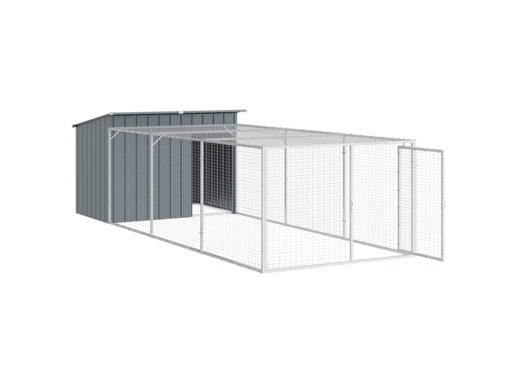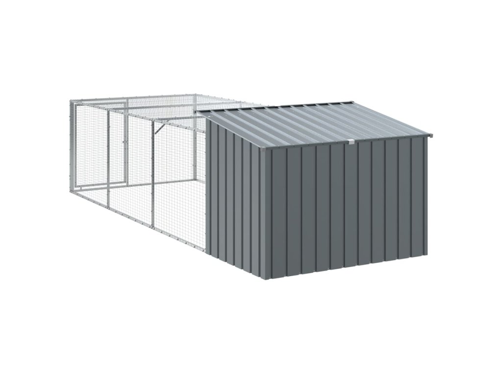 vidaXL Psí bouda s výběhem antracitová 153x396x110 cm pozinkovaná ocel