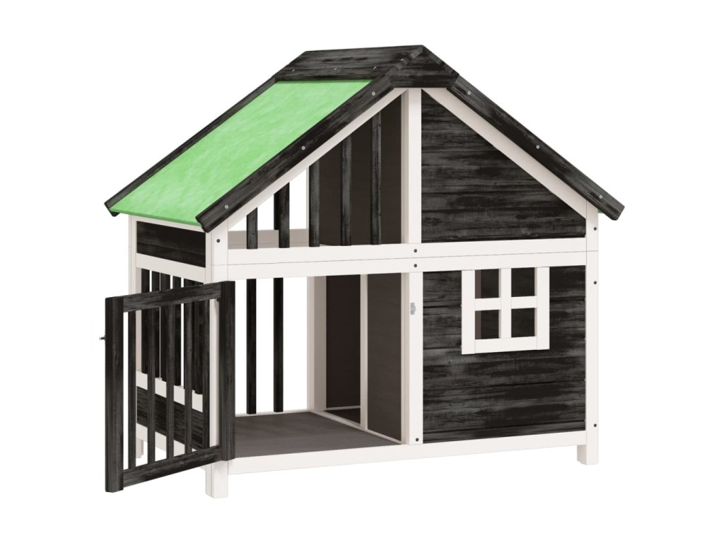 - Voděodolná střecha: Zelená voděodolná střecha boudy zajišťuje psům teplé, suché a pohodlné prostředí.