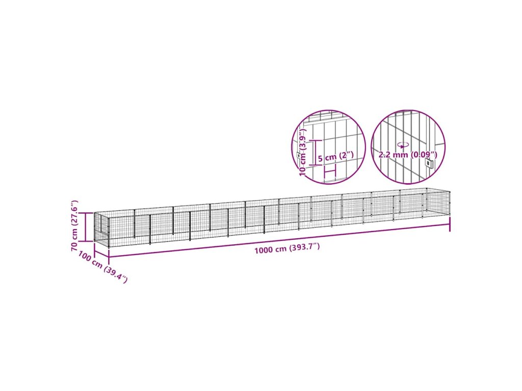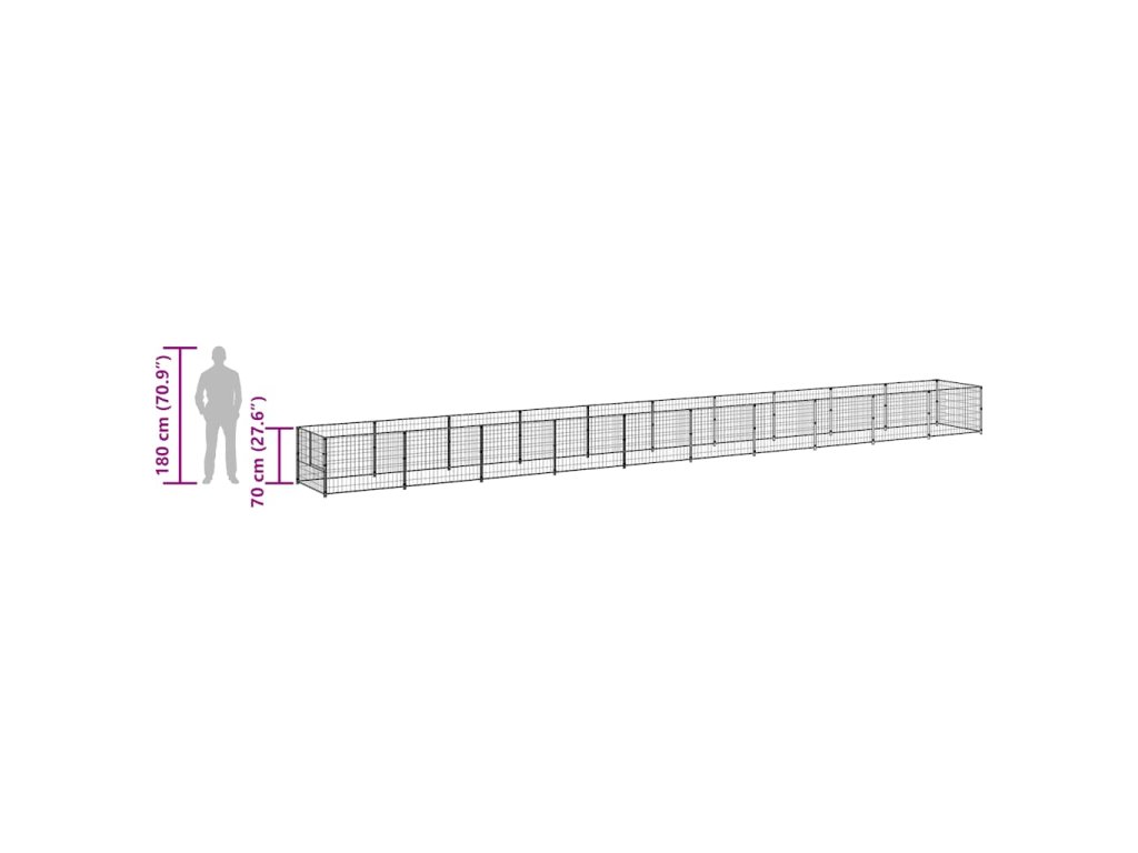vidaXL Psí kotec černý 10 m2 ocel