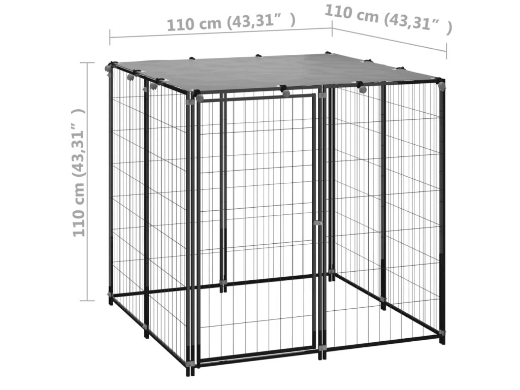 vidaXL Psí kotec černý 110 x 110 x 110 cm ocel