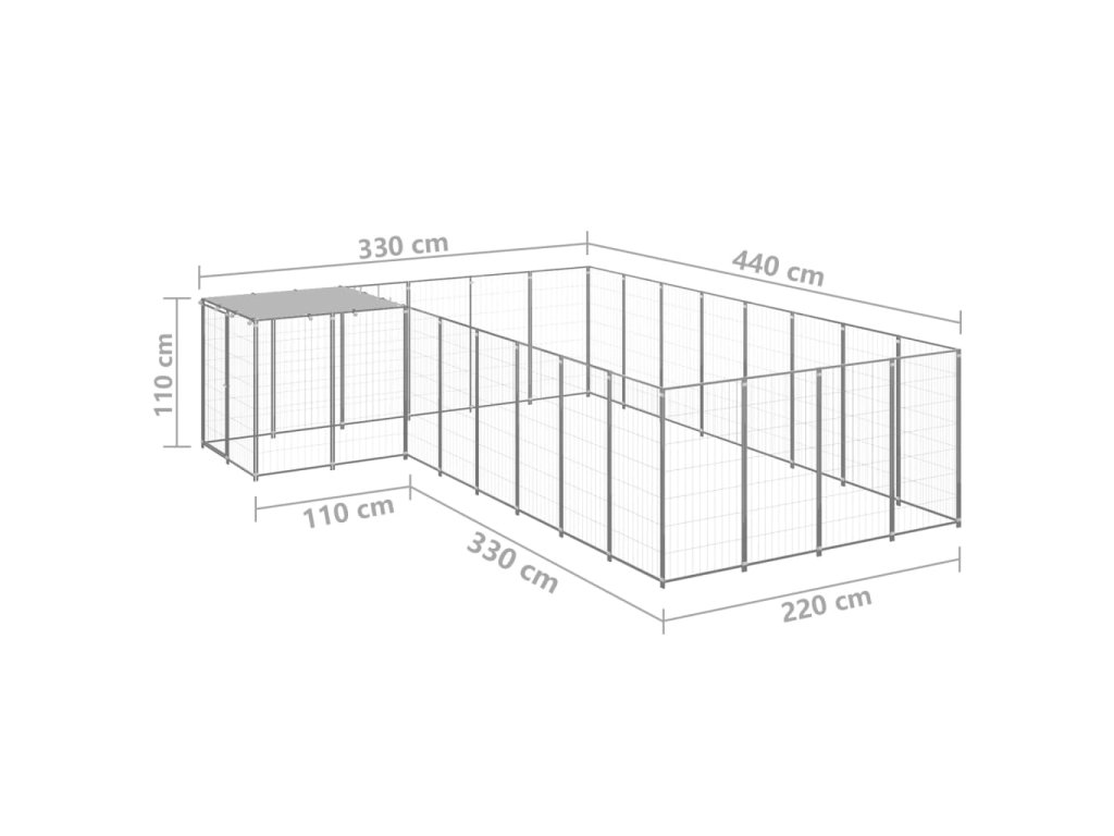 vidaXL Psí kotec stříbrný 10,89 m2 ocel