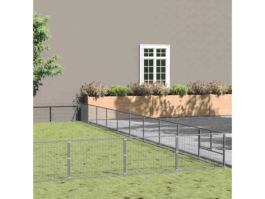 vidaXL Psí kotec stříbrný 100 m2 ocel