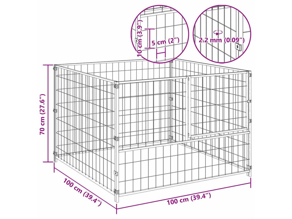 vidaXL Psí kotec stříbrný 100 x 100 x 70 cm ocel