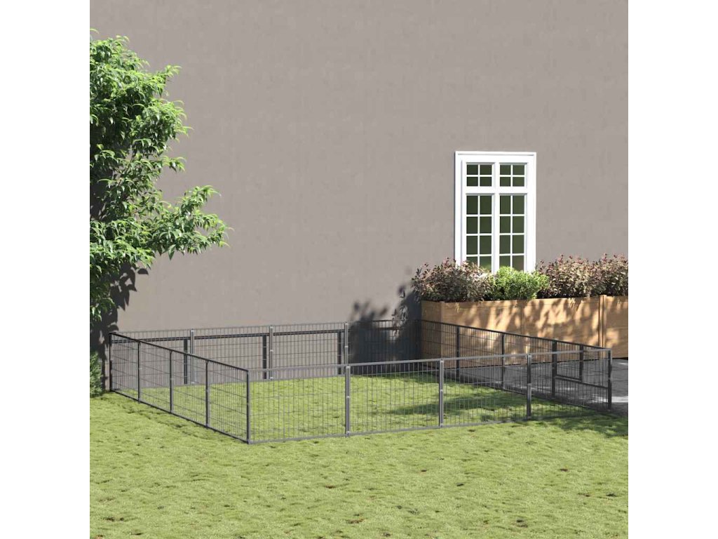 vidaXL Psí kotec stříbrný 16 m2 ocel