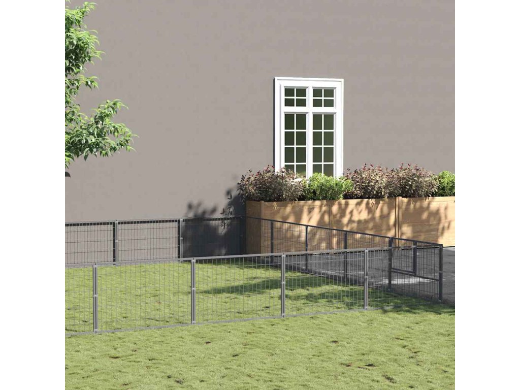 vidaXL Psí kotec stříbrný 35 m2 ocel