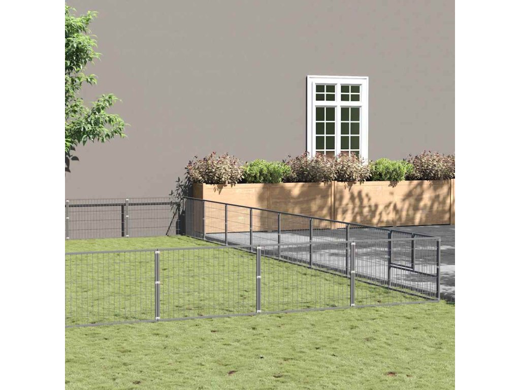 vidaXL Psí kotec stříbrný 80 m2 ocel