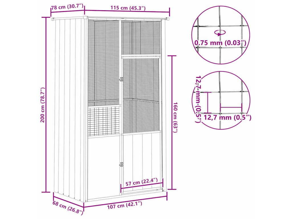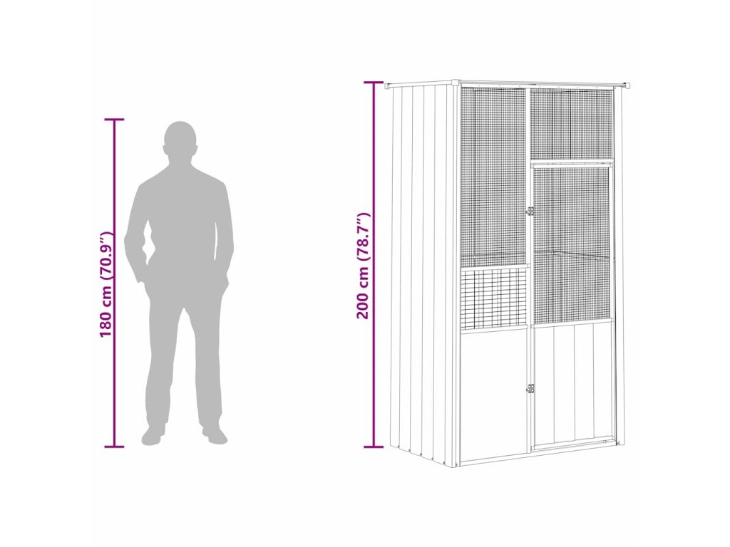 vidaXL Ptačí klec šedá 115 x 78 x 200 cm pozinkovaná ocel